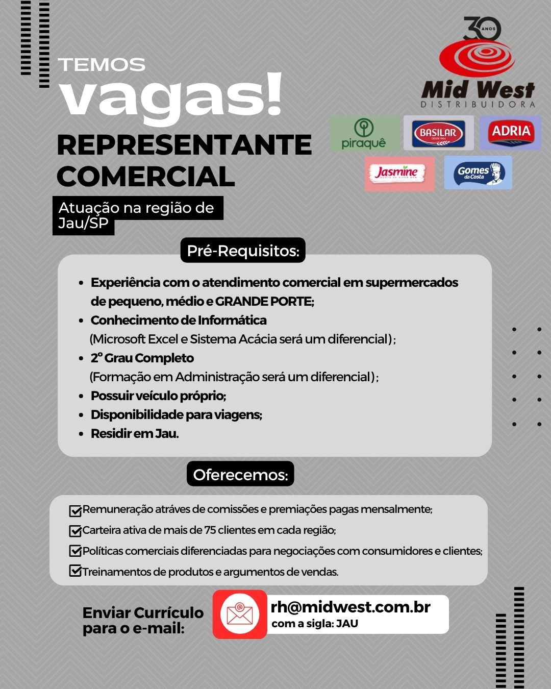 Representante comercial autônomo para atuação na região de Jaú/SP